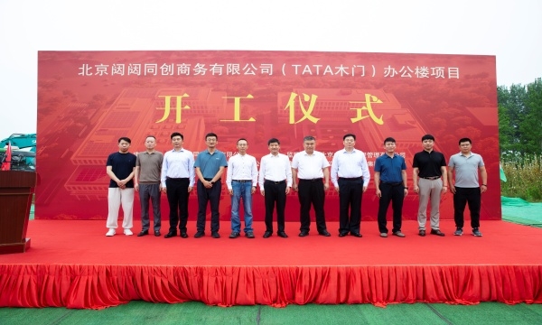 仪式在热烈的氛围中拉开帷幕。纵瑞原董事长介绍,TATA木门新办公楼落址潞城镇核心区域,致力于成为TATA木门参与副中心建设的实体载体。期待与潞城镇政府一道,在产城融合示范区建设中,通过政企联动的资源整合模式,为区域经济高质量发展注入产业协同动能。
