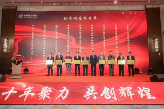 活动表彰环节,集团公司从劳务分包队伍、专业分包队伍及部分材料供应商的服务质量、行业技术、供应能力、合同履约等方面,表彰了45家不同领域的优秀供应商伙伴,由集团公司相关领导为各获奖单位代表进行颁奖。座谈环节,各位供应商代表各抒己见,分享项目经验、提出改进建议,并纷纷表达与集团公司携手共进、砥砺前行的愿望。